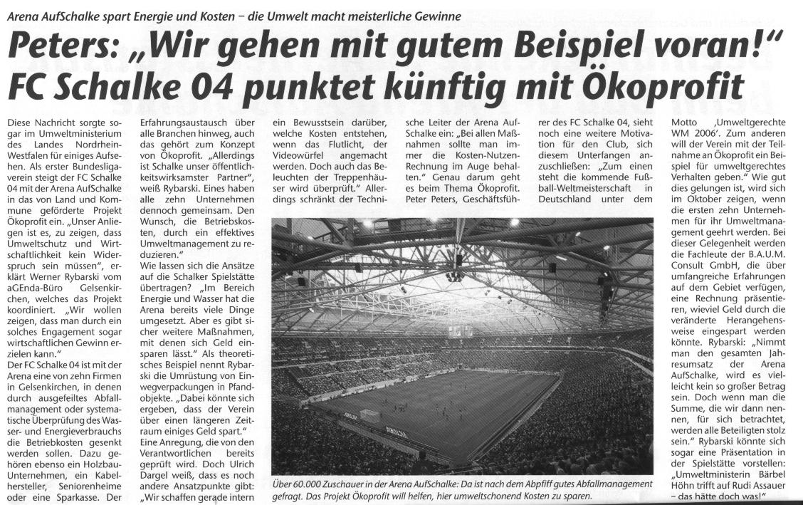FC Schalke 04 punktet künftig mit Ökoprofit
