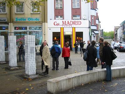 "Frederico Gracia Lorca"... Es dauerte ein knappes halbes Jahr, bis wir Karl soweit hatten, den Namen des spanischen Dichters korrekt zu buchstabieren. Noch immer rollt er das L von Lorca, wie er es bei "Schaalke" gewohnt ist. Immerhin war es dieser alte Sozi, der den Namen des "Café Lorca" erfand und uns politisch unterstützte, als der Freundeskreis Federico Garcia Lorca 1998, ausgehend vom Wendehammer an der Ruhrstraße und dem dort angesiedelten "Las Tapas", ein riesiges Lorcafest in Gelsenkirchen organisierte. Wir wollten zunächst eine Büste des Dichters aufstellen am Platz, der nun den Namen "Platz Federico Garcia Lorca" bekam. 1999 entschieden wir uns anders und begannen, zusammen mit den Anwohnern und den Gastronomen und den Leuten von der lokalen Agenda 21 über eine Platzgestaltung nachzudenken. So wurde aus dem Lorca Platz auch das erste Projekt des neugegründeten Arbeitskreises Lebensraum Stadt.