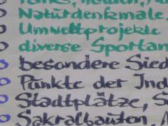 Die Themen hatten sich teilweise schon als Idee in der letzten Werkstatt ergeben. Sie wurden als im wahrsten Sinne des Wortes "Leit-Projekte" vorgestellt, die eine  gezielte Auswahl von Schätzen, ein gezieltes Zusammenbinden von Attraktionen erleichtern und zugleich effektiver machen sollen, weil es schlechterdings unmöglich ist, allen immer gleichzeitig alles anzubieten.